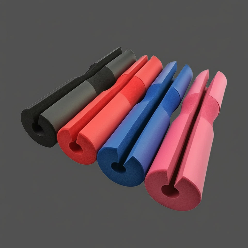 Nakładka na sztangę wygodnie układa się na górnej części pleców i ramion, zapewniając komfort podczas ćwiczeń.